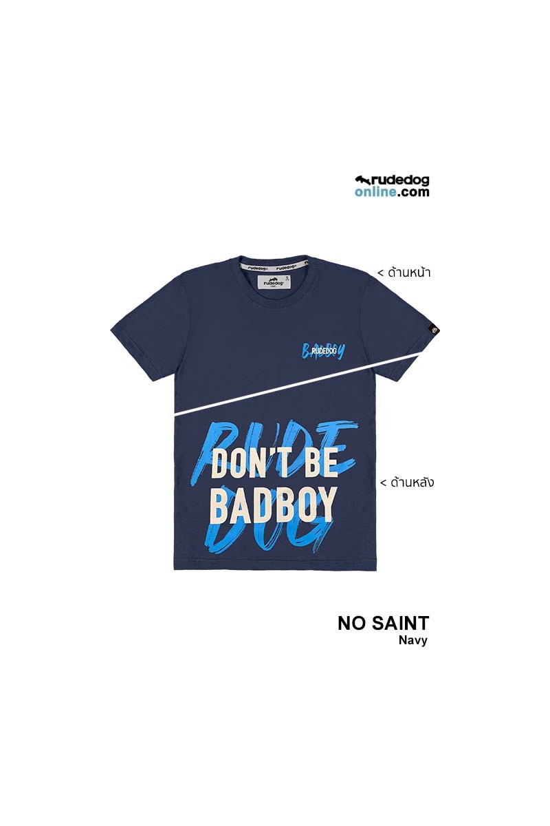 - ด้านหลังเสื้อ งานสกรีนเทคนิคลายพู่กันในชื่อแบรนด์ RUDEDOG ตัดทับด้วยฟอนต์บล็อกกับสโลแกน DON'T BE BAD BOY ให้ฟีลแบบกราฟฟิตี้